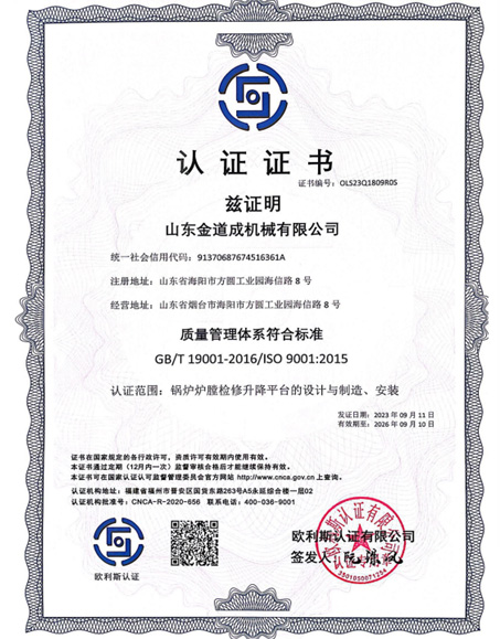 部件采用模塊化設計成滿膛結構,淘汰回型結構鏤空的空缺(工作走臺滿膛平鋪無盲區);去掉折疊平臺走臺上的斜拉索,設計成下撐桿式的折疊走臺,極大地方便了工作走臺上的人員無障礙行走。循環(huán)流化床鍋爐可以直接在爐底風帽上組裝完成,煤粉鍋爐可以在運轉層檢修人孔以下0.5米左右的標高位置安裝(可配套設置冷灰斗專用的我公司專利產品:煤粉鍋爐灰口支撐平臺),把檢修升降平臺由運轉層平臺人孔門運進爐內,直接在搭設好的灰口支撐平臺上組裝。